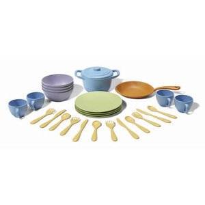 Chefs can concoct and serve make-believe culinary treats that have real benefits for the earth with the world's greenest cookware set. Like all Green Toys products, our cookware and Dining Set helps to reduce fossil fuel use and CO2 emissions, all in the name of Good Green Fun! Meets FDA specs for food contact. Dishwasher safe