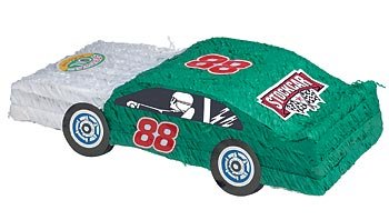 This Stock Car Pinata is great for any race fan. Each Stock Cap Pinata is green and gray, with a red number 88 on the side. This car looks fast, but isn't quick enough to escape getting smashed. 21" x 9" x 4"